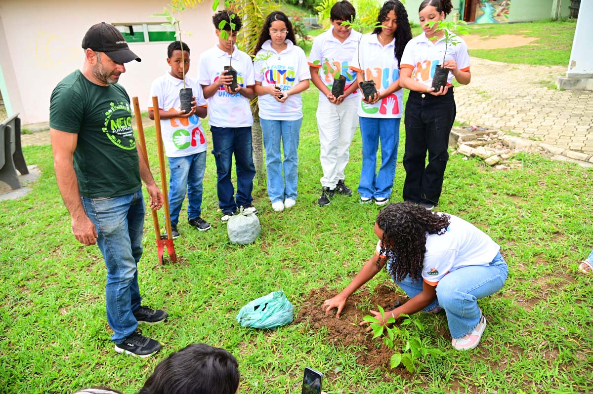Com o objetivo de engajar adolescentes em ações de combate aos impactos das mudanças climáticas, integrantes do Núcleo de Cidadania de Adolescentes (Nuca) participaram de uma atividade de Educação Ambiental, que contou também com plantio de árvores.