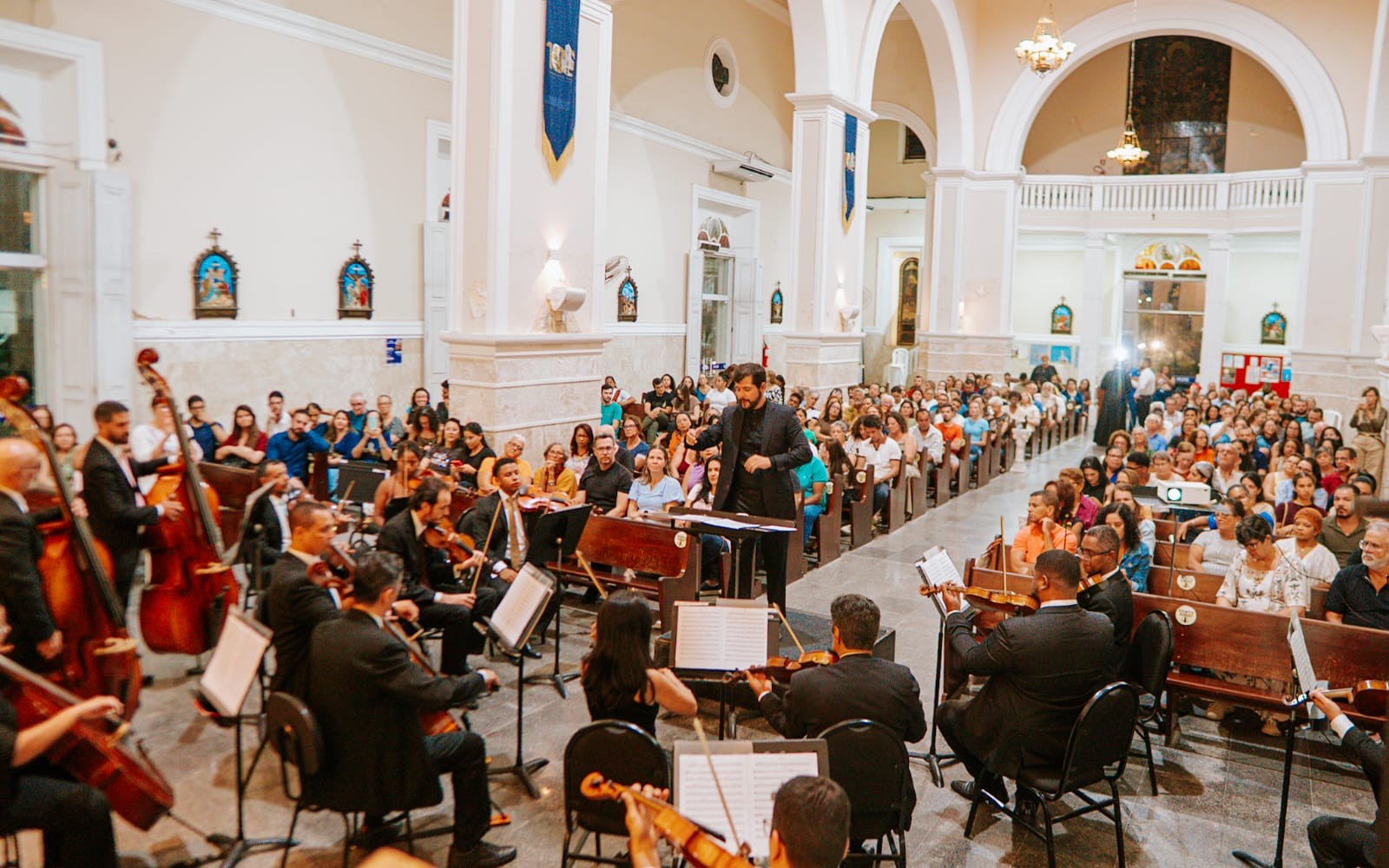 A atmosfera do concerto, aliada à acústica da igreja, proporcionou uma experiência imersiva, aproximando o público da música sinfônica em um ambiente de forte significado cultural e religioso.